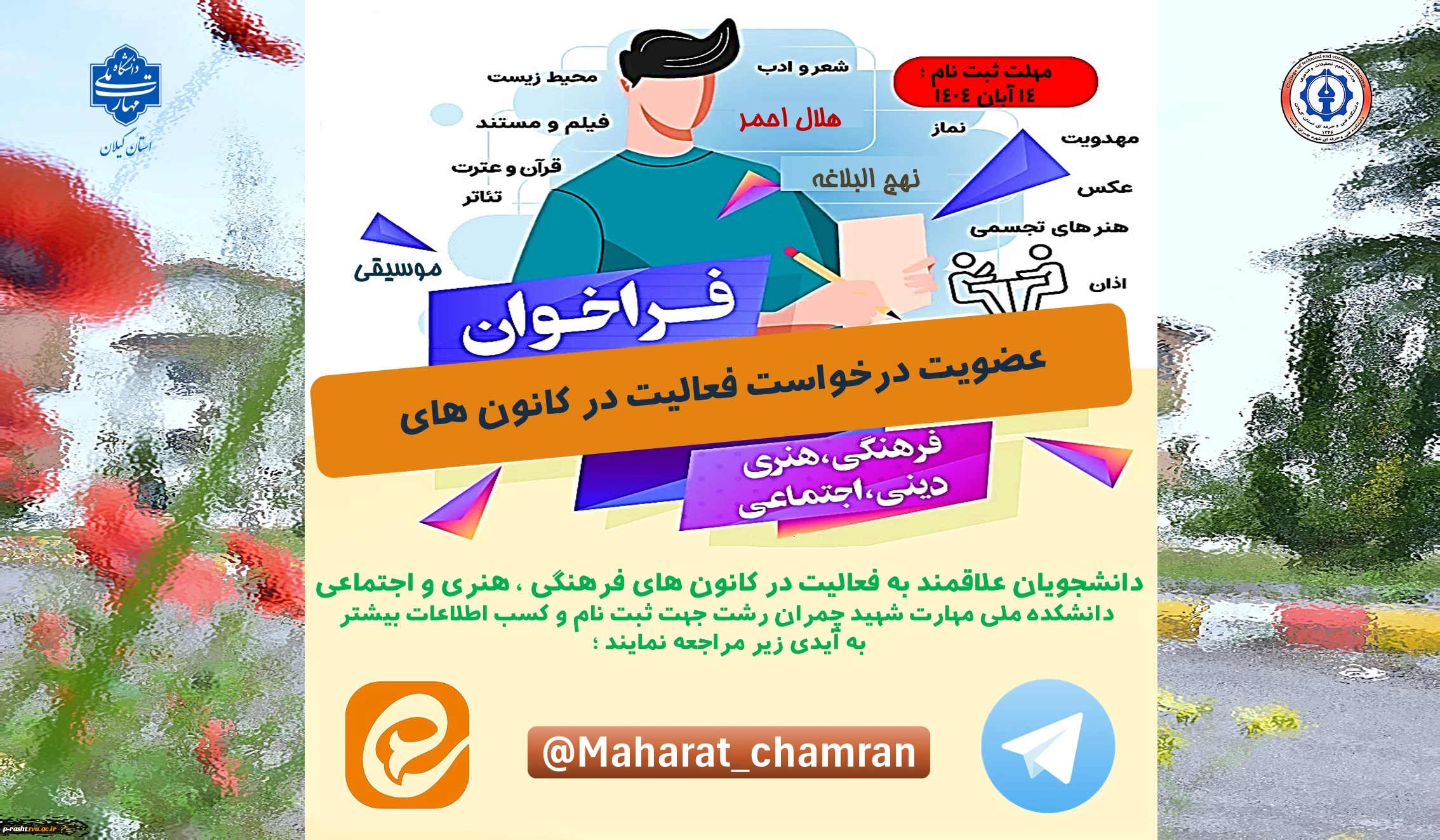 فراخوان ( عضویت درخواست فعالیت در کانون های دانشجویی ) 2