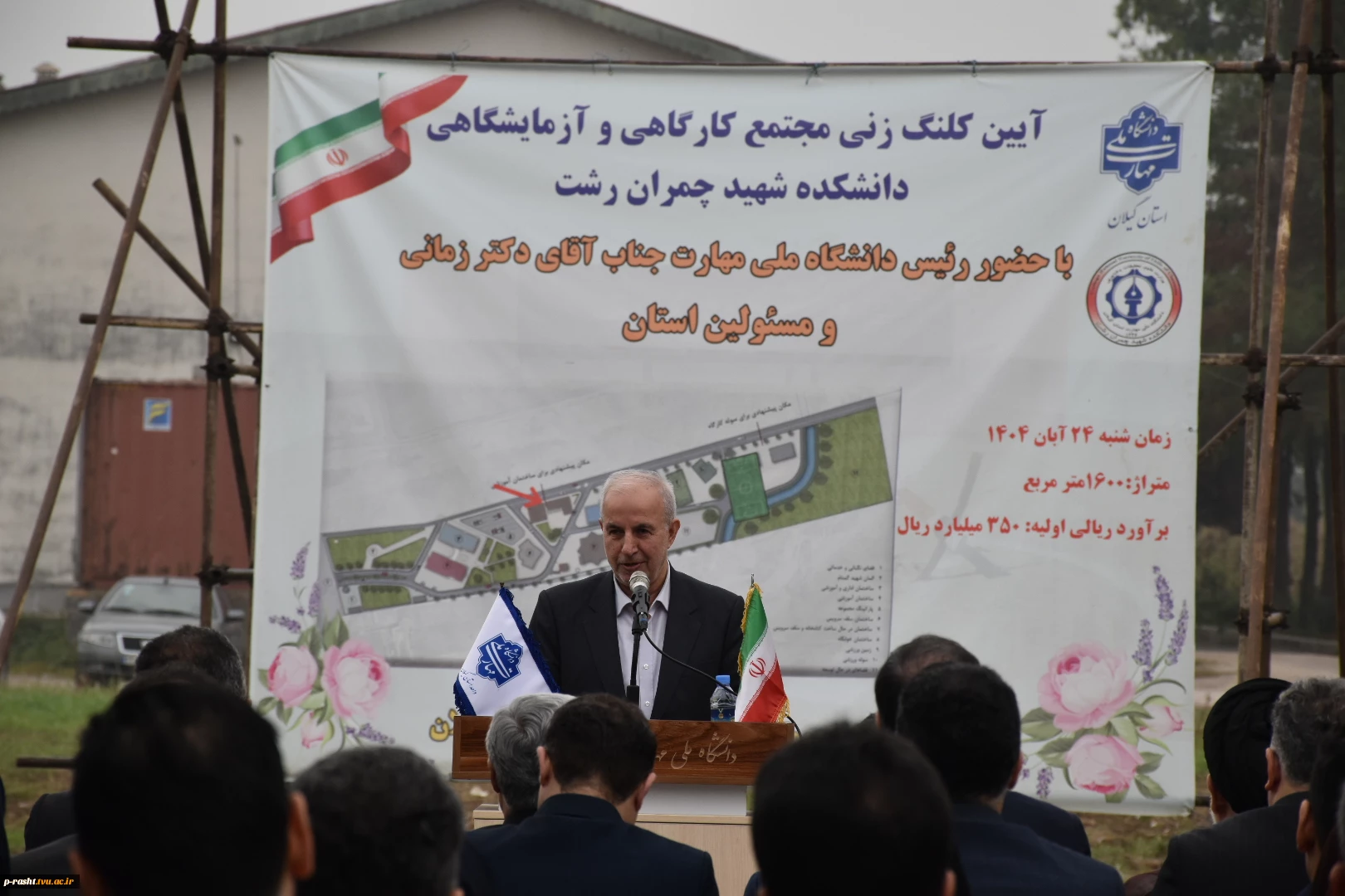 در سفر دو روز دکتر غلامرضا زمانی رئیس دانشگاه ملی مهارت از استان گیلان: آغاز ساخت پروژه مجتمع کارگاهی و آزمایشگاهی دانشکده شهید چمران رشت با حضور استاندر گیلان و جمعی از نمایندگان مجلس و مسئولان و مقامات استانی و بازدید از تعدادی از واحد های هفتگانه دانش